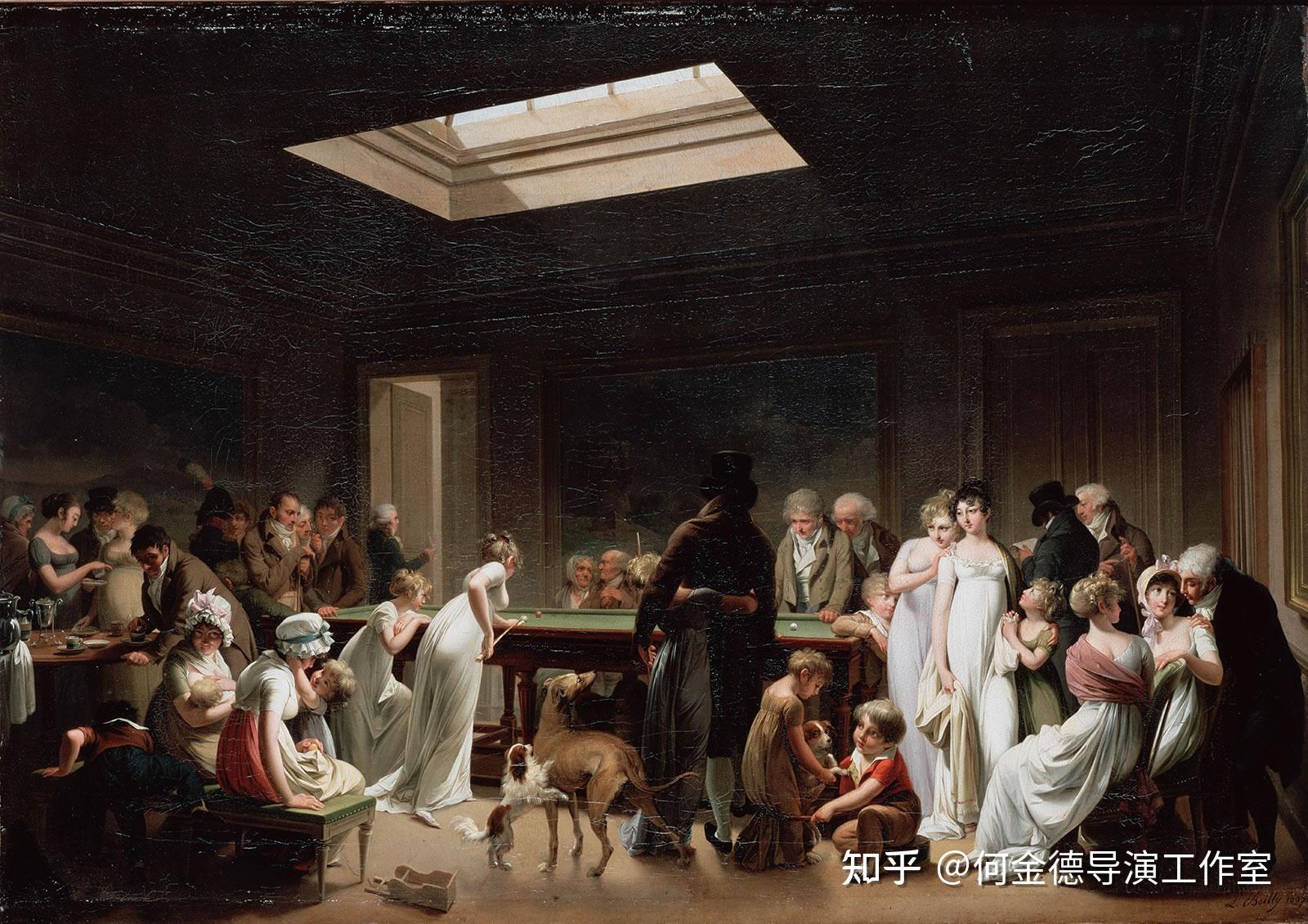 在这幅画中,布瓦伊以极熟练的笔法与色彩,描绘了市民阶层的生活与风貌。在一个桌球俱乐部里,数十人集中在一起,打球,聊天,玩耍。其场景被画家处理得井井有条,人物刻画体现出新古典主义画风的完整细致。色彩严谨,素描一丝不苟,成为一幅古典风味极浓的风俗画。
