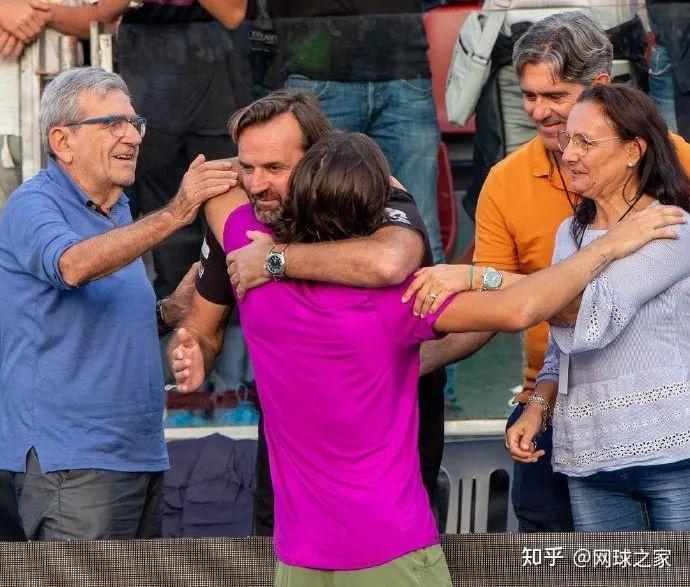 最后来猜一猜认一认。下面这张图片是一位球员获胜之后与家人和团队成员拥抱。不作提示,您能认出他是谁吗?