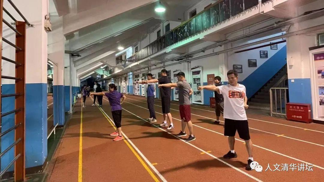 大一上学期的男生体育课统一要教清华拳小专项,这不是刘国正的专业领域,但他上手挺快。“今天早上跟张培萌(“亚洲短跑飞人”,现为清华大学体育部老师)聊天的时候,他说我感觉你清华拳打得挺好,不像刚学的,夸得我特别自信,我跟他说因为我学过军体拳。”他发出一阵大笑。