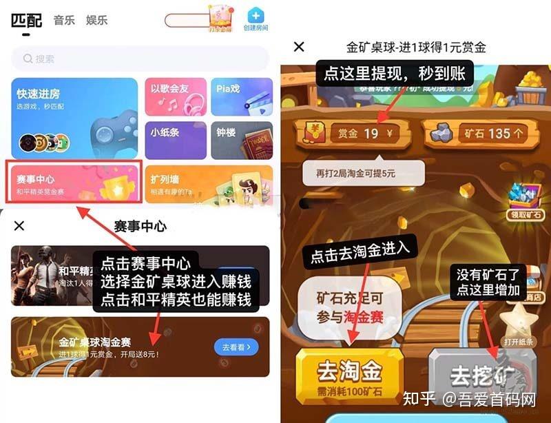 手机号登录,要不领取不了新人红包,点击【赛事中心】金矿桌球进入,点击【去淘金】进入玩游戏,没有矿石了就去挖矿获取!