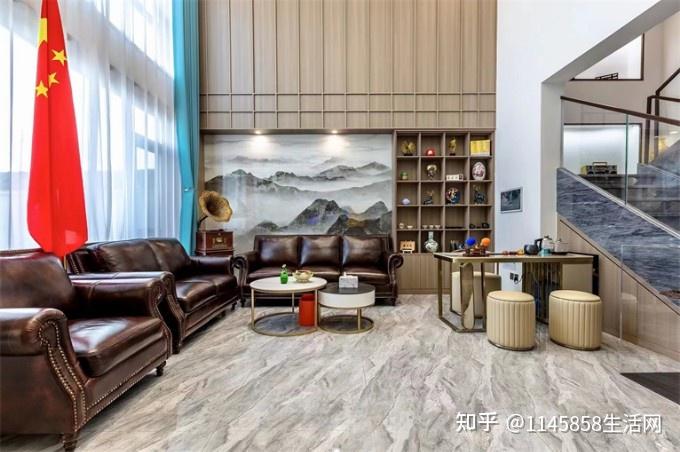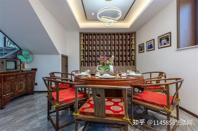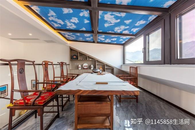 放眼望去,整个客厅空间,典雅之中又散发着一种气势恢宏的感觉!民宿采用传统中式意境风格和大理石山水画背景相契合,高级感满满!