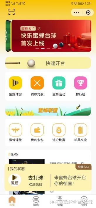 蜜蜂台球程序系统由企业自主研发,深挖客户需求,为台球爱好者们带来了更多价值,其工具支持、社交约球、成长课程、战绩历程、级别排名、会员优惠、信息公告等超高价值的收获。店内无人自助设备全部与店主端管理系统接通,辅助店主实时控制和监测管理,店主端系统注重三大管理重点:人、财、物,让店主端管理高效且轻松。