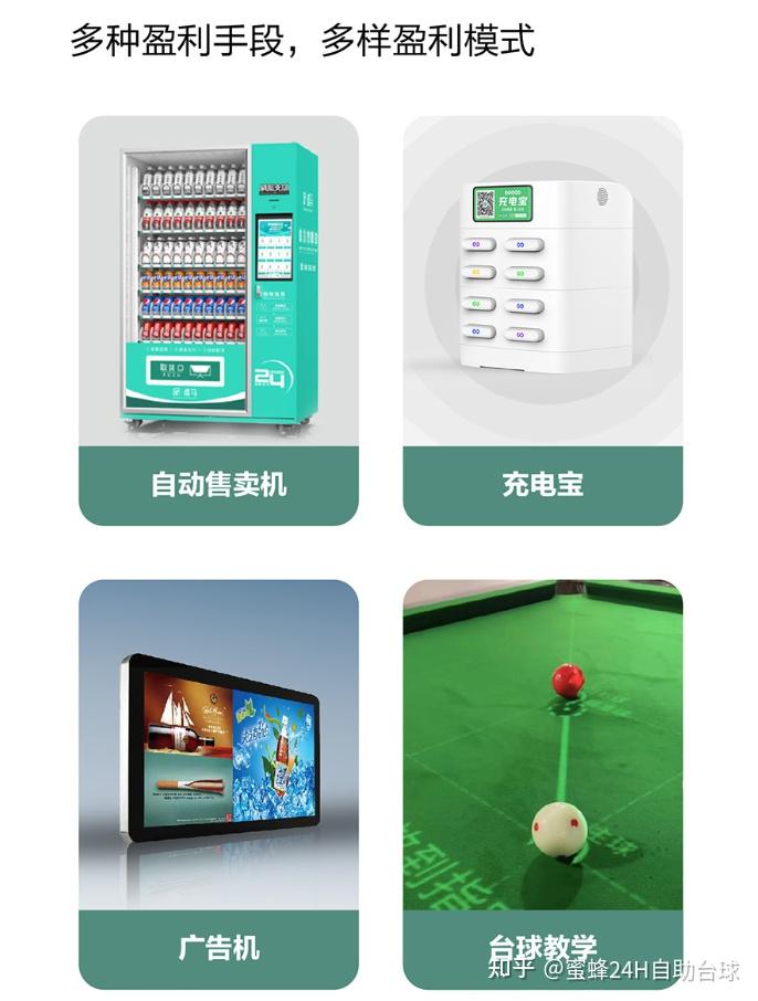 蜜蜂台球多样化发展,采用多种盈利手段,多样盈利模式。在台球厅里放广告机、自动售卖机、自助充电宝、台球教学等,这样多样化发展,不仅可以增加收入,而且还能让客户更好的方便打球,同时为台球爱好者提供更好的体验感和爱好之路的留存。