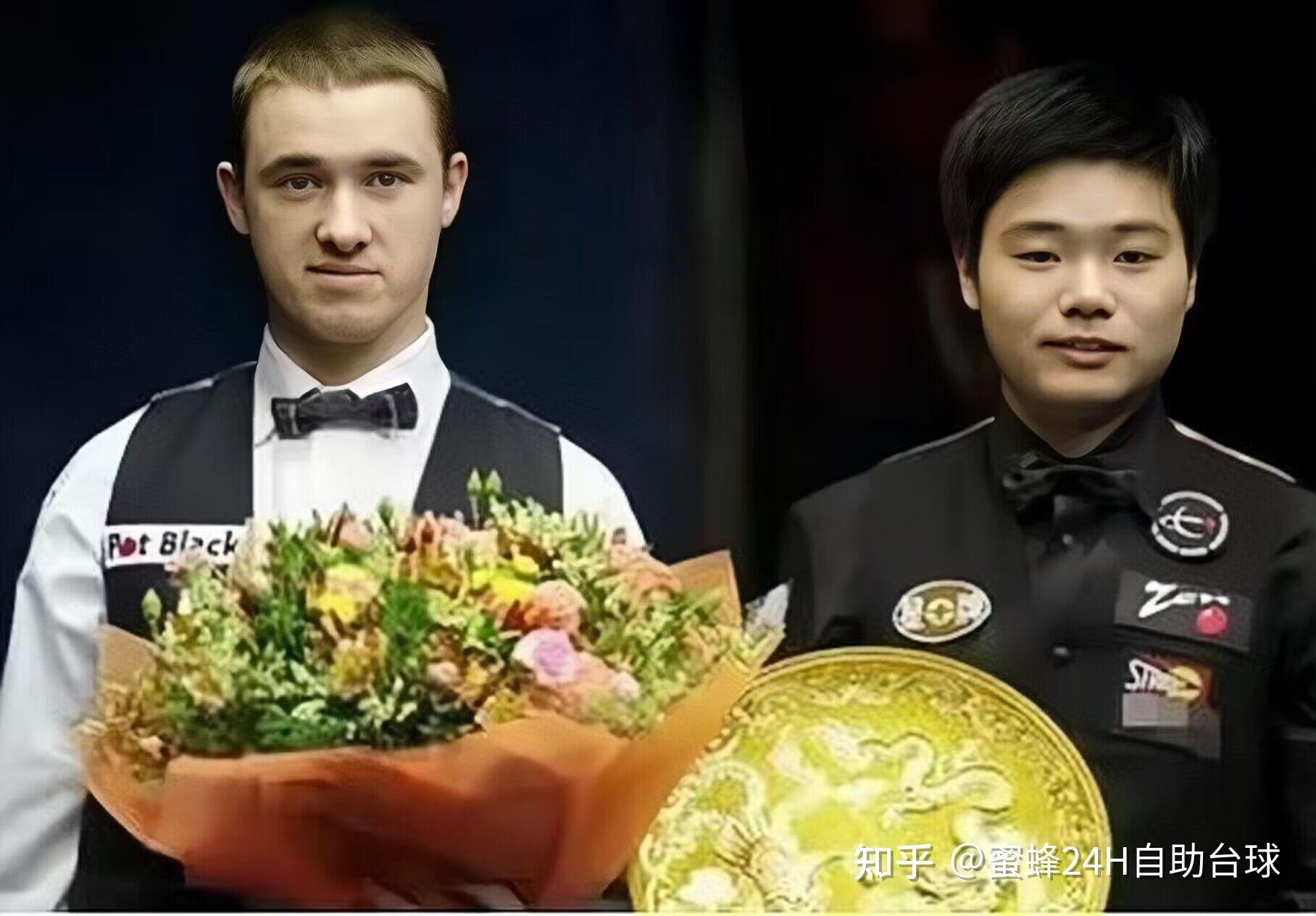 上图—丁俊晖获得北京公开赛冠军,与亚军亨德利合影