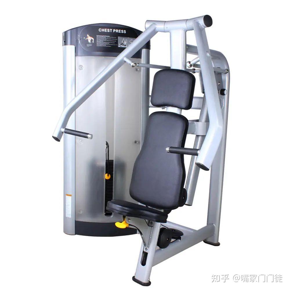 :坐姿推胸训练器也是健身房器械一角的常客,主要锻炼我们的胸大肌、三角肌前束和肱三头肌等部位