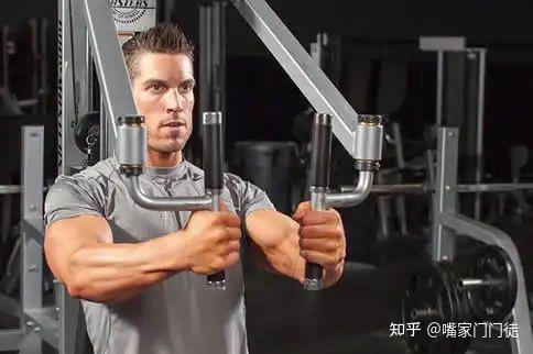:蝴蝶机是练胸爱好者的常用器械,主要以飞鸟夹胸的方式锻炼胸大肌