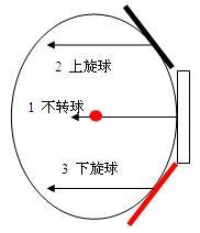 本实验 3 次都是相同拍形的直线挥拍打在同一个击球部位,因挥拍方向不同,打出球的旋转性质也截然不同。由此可得进一步的推断: