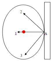 实验二 假设球拍以同一种拍形(横立拍)直线挥拍 3 次都击打了一个静止乒乓球的正中后部同一点 A 上,但挥拍方向各不相同(参见图3):3 次挥拍方向依次是向前方、向前上方、向前下方。显然,只有第一次击中球心,打出不转球。第 2、3 次击球力线都偏离球心,分别打出上旋球、下旋球。