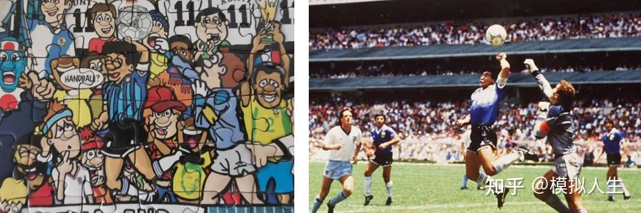 1986年6月22日,在墨西哥世界杯1/4决赛阿根廷对阵英格兰的比赛上,马拉多纳用手把球攻入了英格兰队的球门,并且裁判判定进球有效,这就是著名的“上帝之手”事件。后来把在足球比赛中用手将球打进,且被裁判误判有效的情况称为“上帝之手”。