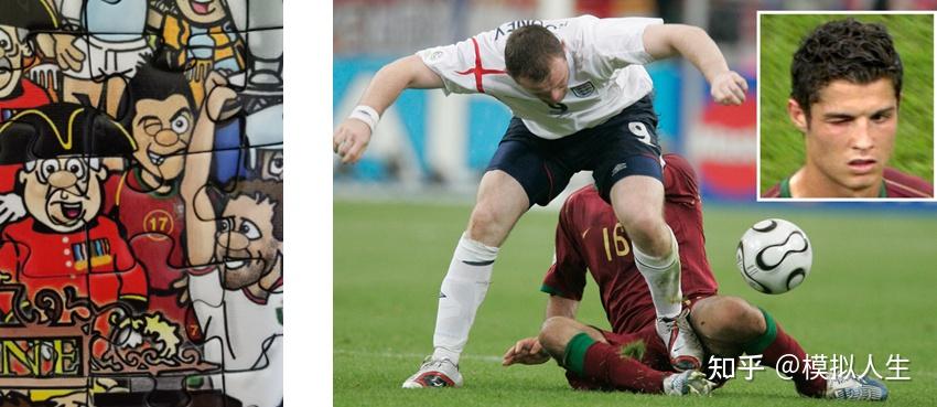 2006年世界杯英格兰对葡萄牙的8强战中,鲁尼踢倒葡萄牙后卫卡瓦略,C罗和葡萄牙球员上前跟裁判争执,随后裁判给了鲁尼红牌,在鲁尼下场不久后,电视转播拍到C罗向场外"眨眼",少打一人的英格兰最后输掉这场比赛。当时英国媒体把矛头指向C罗,认为C罗算计了鲁尼,忽然这位曼联7号成为英格兰头号公敌。