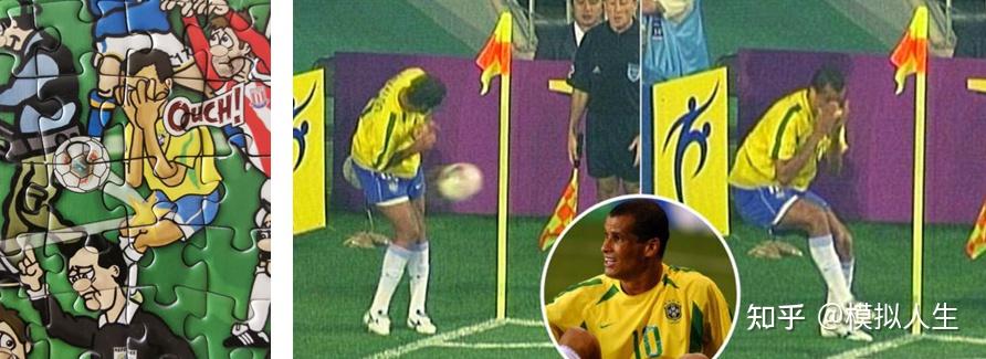 2002年世界杯,在巴西与土耳其的小组赛中,里瓦尔多准备开角球,此时土耳其的云萨尔将球踢到了里瓦尔多的腿上,当时球速并不快。岂料,里瓦尔多马上双手捂脸,就像被球重重砸到脸部一样痛苦地向后栽倒,主裁以为事态严重,当场给了云萨尔一张红牌。
