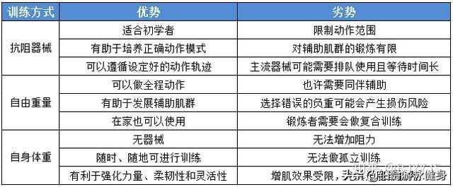 7.抗阻器械、自由重量和自身体重训练各有什么优势和劣势?
