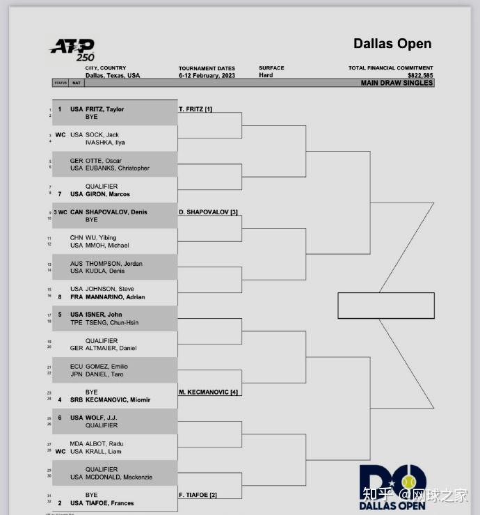 ATP250达拉斯站男单正赛签表也在北京时间昨晚公布,美国双星弗里茨、蒂亚福、加拿大名将沙波瓦洛夫和塞尔维亚人凯茨玛诺维奇分列前4号种子。中国二哥吴易昺直接入围正赛,首轮将迎战本土球员迈克尔-莫,小将商竣程将出战资格赛。WTA500阿布扎比站正赛签表也新鲜出炉,中国老将张帅首轮对战爱沙尼亚名将康塔维特,郑钦文的对手是一位资格赛球员。
