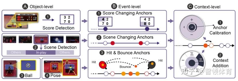 实验室为此提出了一种隔网运动视频数据标注分析框架EventAnchor。该框架集成了用于场景检测和目标跟踪的计算机视觉模型,并使用模型输出创建一系列锚点代表比赛中的重要事件。