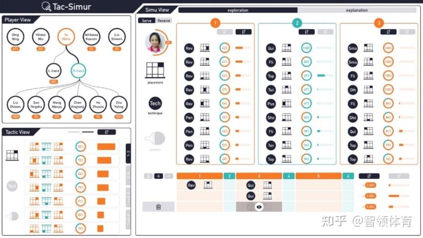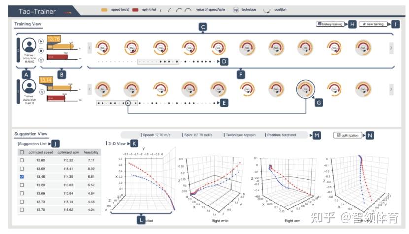 数据与模型最终以可视分析系统的形式呈现给用户。从系统中,运动员可以发现质量较低的击球以及推荐的优化方式。