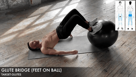 准备动作:仰卧在垫子上,脚跟放在瑜伽球上,大小腿承90度夹角。