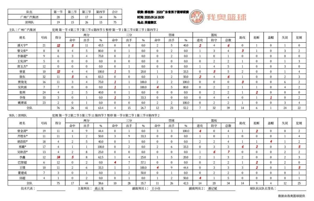 而汕尾队,罗健林20分黎晓全19分12篮板叶天宇也拿下了13分8助攻