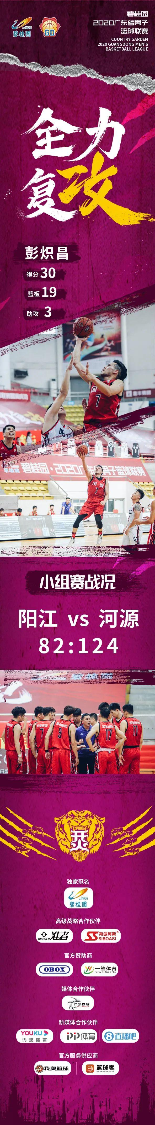 河源锁定八强席位文/鱼蛋英德赛区首场对决在阳江华辉煌集团和河源坚基集团中展开河源全场攻防两端都压制住对手最终以124比82大胜对手小组赛四连胜登顶B组榜首,锁定八强席位阳江则排名小组第四,无缘八强附加赛