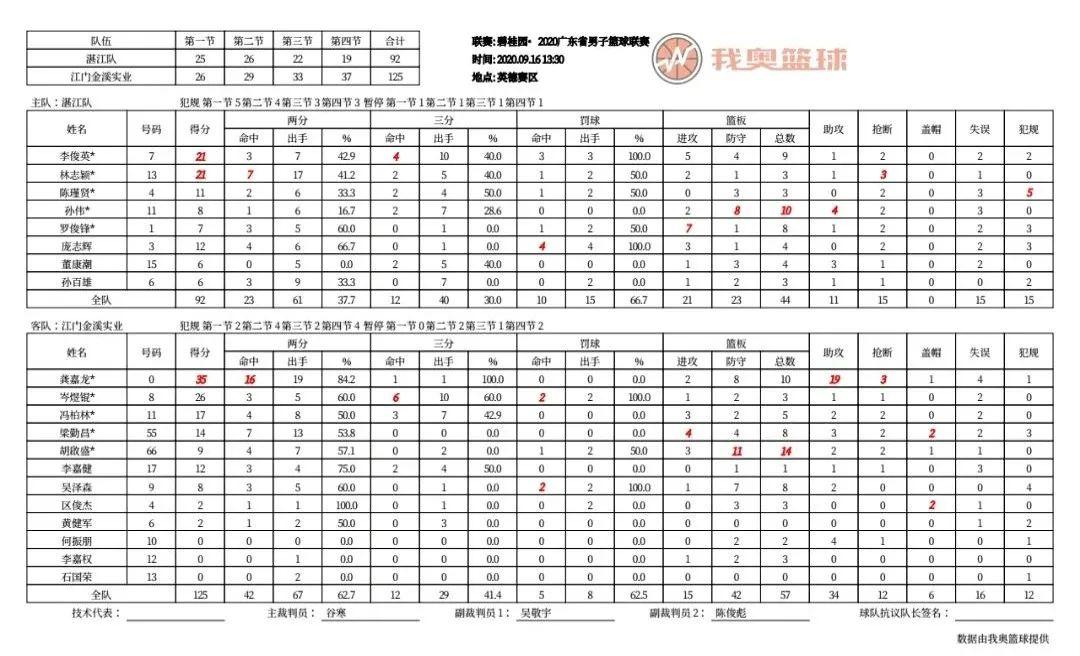 阳江也有四人得分上双吴进灿18分,冯荣恒16分陆达远13分,林良起12分