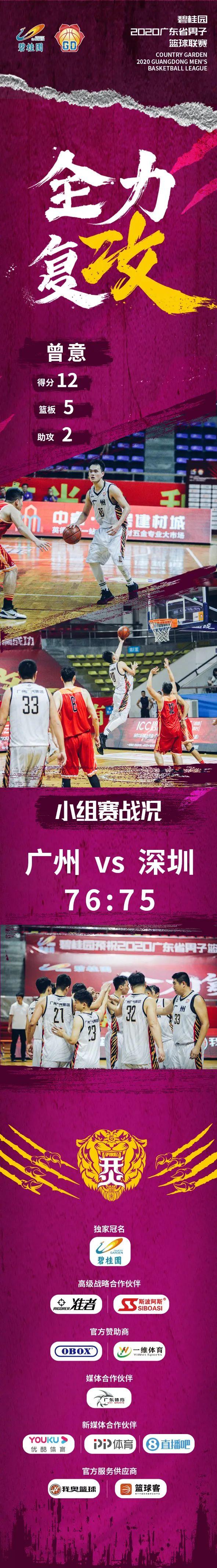 广州重返八强文/荒野碧桂园·2020广东省男子篮球联赛继续进行广州广汽集团队和深圳队的比赛打得惊心动魄——直到最后一秒钟比赛才分出胜负广州队防住了深圳队最后时刻的进攻以76比75险胜对手从而以C组第一的名次成功进入本届省联赛的八强这也是广州队近3年来参赛的最好成绩
