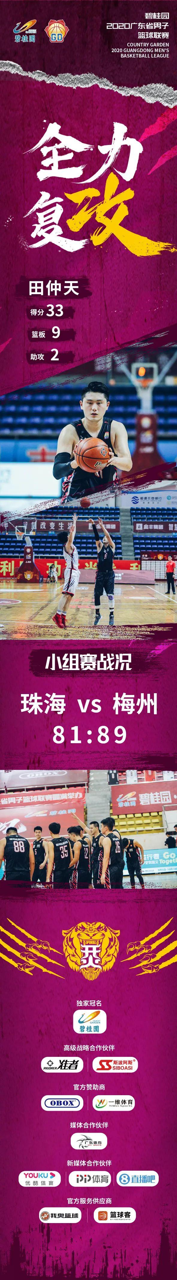 最后一节,梅州进攻失误珠海蔡锴南奋勇上篮2分梅州田仲天继续发挥篮底优势得2分珠海蔡炜突破2分庄泽钦迎着田仲天投入3分,分差4分随后一次犯规今天表现优异的珠海陈康华5犯离场比分进行到73:84还剩3分钟之际珠海吕志明终于投中了他在本场的第一个三分球比赛结束,珠海队81:89告负,遗憾告别本赛季由于广州今晚战胜了深圳因此梅州排名第二挺进八强附加赛
