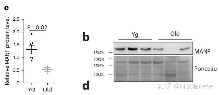图注:老年小鼠MANF蛋白表达水平较年轻小鼠显著减弱