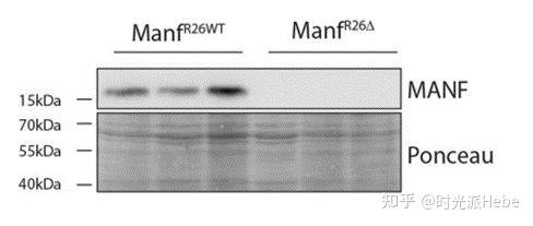 图注:“小白”Manf R26Δ组完全不表达MANF蛋白