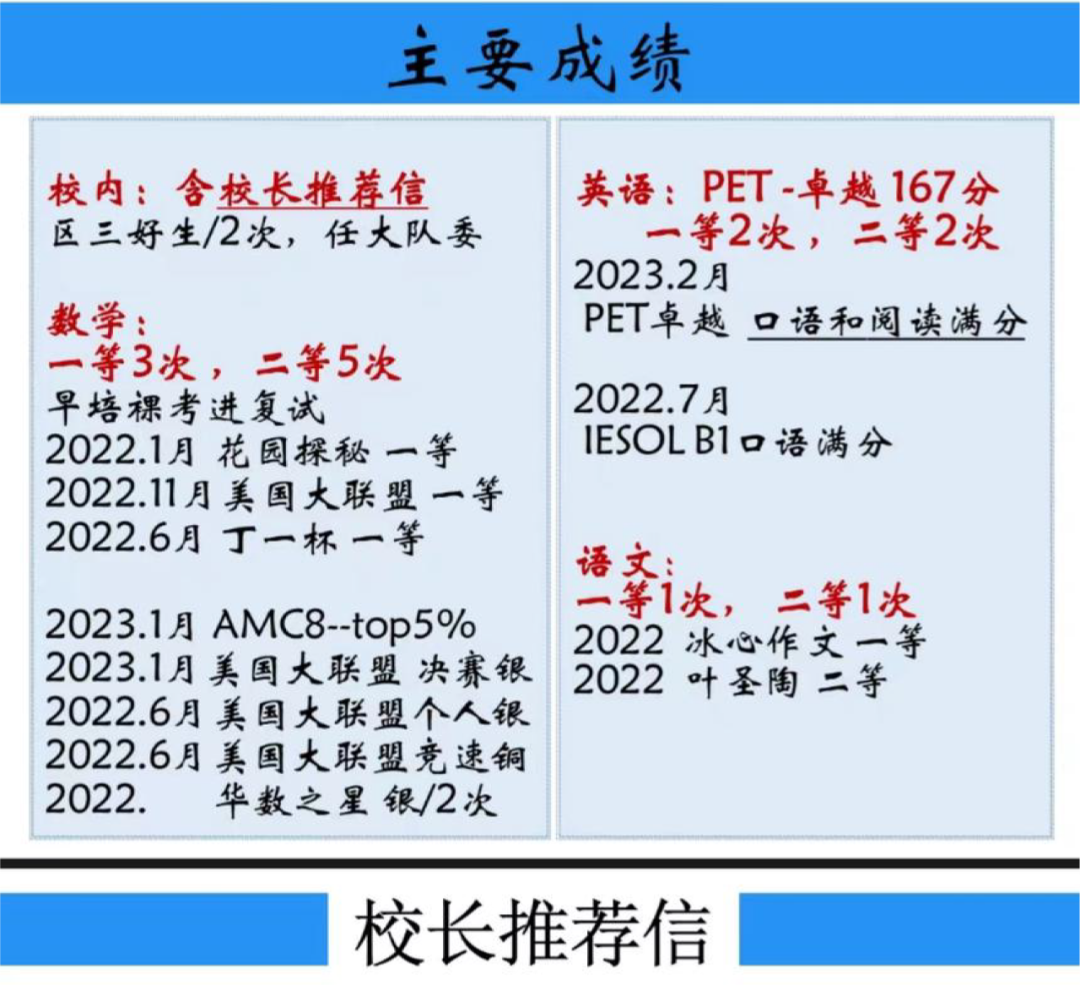 儿子的小升初简历