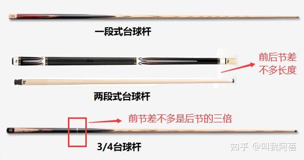 • 3/4球杆:在3/4分处连接,前支力度没有被衰减,打球力度比较高,前支大概是后把的3倍,现在比较流行的球杆种类。