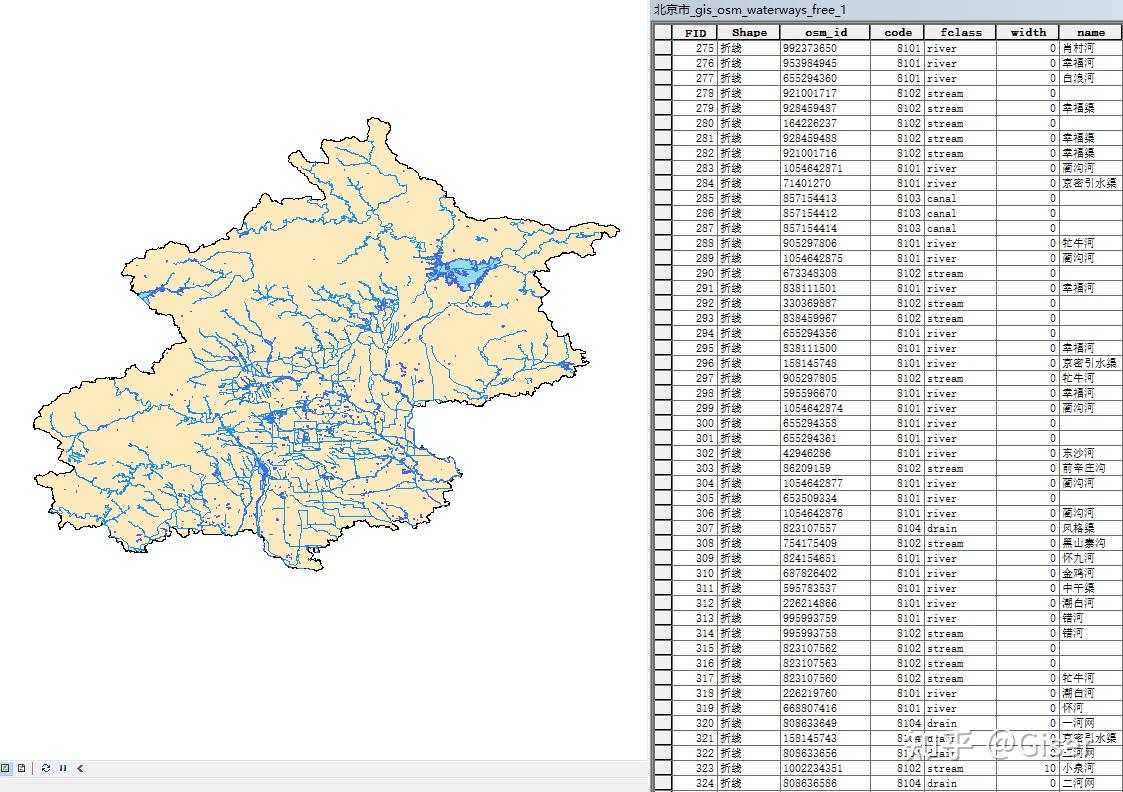 北京市河网水系数据(线状:溪/小河、河/江、运河、下水道/排水管;面状:水域、水库、河岸、湿地/沼泽地)