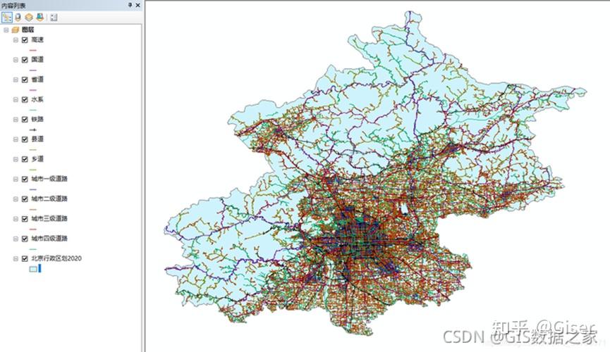 第一种路网数据:北京市行政区划(2020)、城市一、二、三、四级道路、高速、国道、省道、铁路、县道、乡道