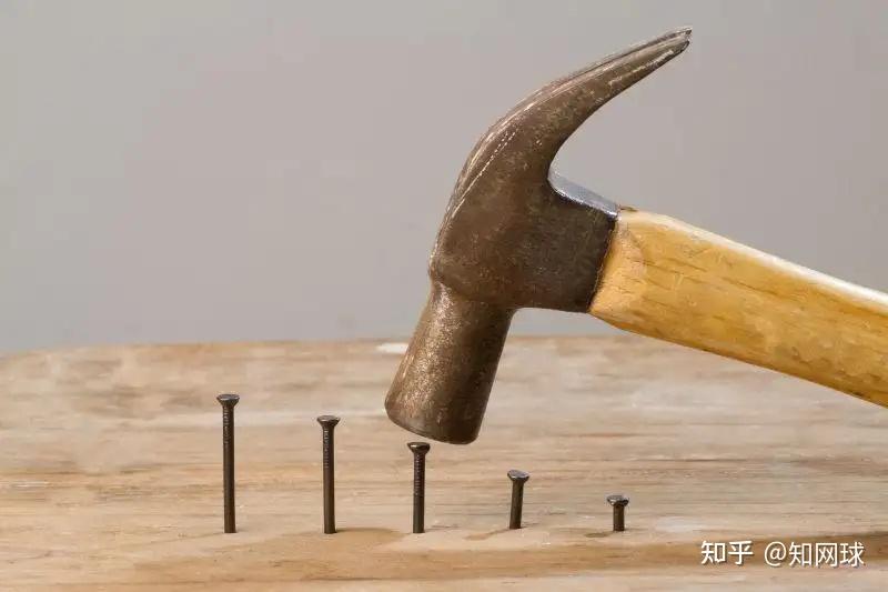 手握着锤子那头,挥动木柄,感觉非常轻松,挥速快,但敲打钉子就非常难了;