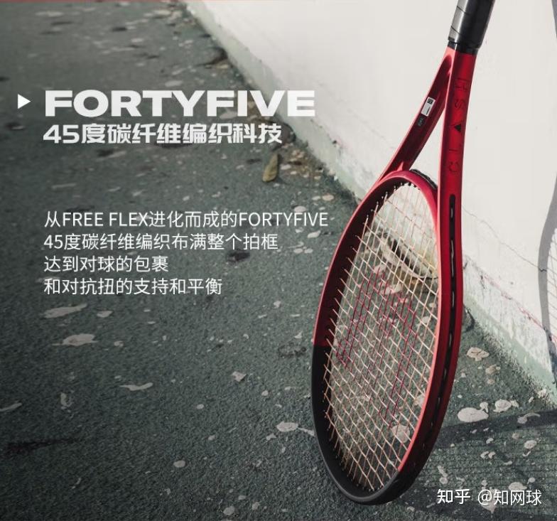 球拍采用FORTYFVE45度碳纤维编织科技。从FREEFLEX进化而成的FORTYFIVE45度碳纤维编织布满整个拍框达到对球的包裹和对抗扭的支持和平衡。FOPTHFIVE科技的碳纤维板,在水平中轴线上可以横向弯曲,不仅抗扭转,且球拍的包裹性更强使击球手感更舒适。