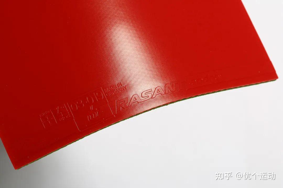 仅以面胶本身属性而言,主流分类方法是根据齿粒朝向而区分为 “Out”(颗粒胶)与“In”(反胶),其中国内将颗粒胶硫化程度以及长短粗细分为了正胶、生胶与长胶,虽然曾经作为国内的绝对主流胶皮,但随着弧圈的演进已经越来越小众,这里就不深入展开了,咱们还是主要聊聊反胶在视觉方面能够展现出来的信息。反胶则主要分为粘性与涩性两种类型,前者多为国产套胶,由于表层有盖胶,因此粘性胶皮往往在视觉上更富有光泽感,胶面平整且无太多磨砂质感。涩性胶皮主要通过面胶形变来完成要求,因此面胶通常为哑光效果,且磨砂质感突出。以红色胶皮为例,观察颜色的透明度可以看出胶皮的含胶量,一般较为透明的胶皮含胶量低,硬度高,手感反馈更为敏锐;而不透明的胶皮则含胶量高,易形变,弹性好,更适合深度摩擦。