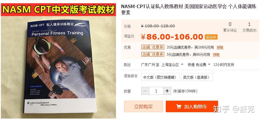 NSCA也有中文版NSCA-CPT教材(《美国国家体能协会私人教练基础》)和NSCA-CSCS教材(《肌力与体能训练(第三版)》),我考的是NSCA-CPT,但是教材翻译质量不佳。