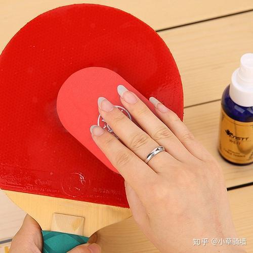 首先,要保持球拍胶皮的清洁,不要用有油的手去擦拭。如果表面油滑的话,胶皮的粘着力会下降,在接触球的瞬间易滑动,不利于增加球的旋转。如果胶皮有不易清洁的脏物,可以用肥皂等清洁剂洗净,晾干后贴上保鲜膜,这对防止胶皮氧化,保持粘性、弹性等至关重要。