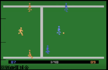 长方形的场地、球员、禁区、球门,80年代初期的游戏能够出现这些足球比赛的经典元素,已经足够让当时的玩家满意。缺点也很明显,没有门将、球员无法自由移动、缺少进球之外的所有规则,游戏可玩性更是一塌糊涂,这也就意味着他们仍然只能算是足球游戏的雏形。